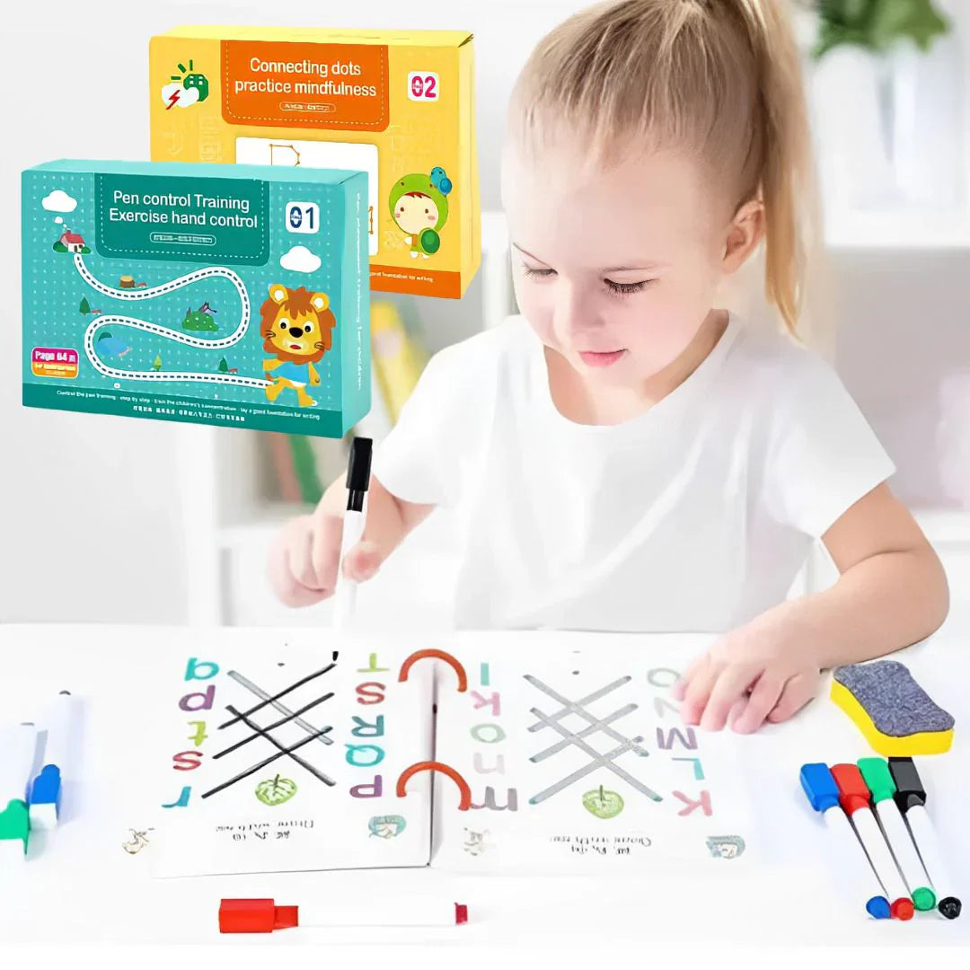 A practical writing workbook for children aged 3–6. The sturdy, erasable pages allow children to draw, erase, and start again without wasting paper. Children practice lines, patterns, numbers, and letters, developing hand precision, hand-eye coordination, and concentration. Colorful tasks guide them step by step, and the included markers and sponge make the work easier. The handy format is perfect for home, preschool, and travel. Durable materials guarantee long, safe use. Ideal for gifts and short, pressure-free daily sessions.